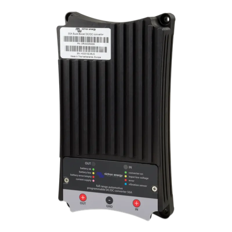 Convertorul DC-DC Buck-Boost este un convertor DC-DC pentru încărcarea unei baterii de serviciu 12/24V în vehicule cu un dinam inteligent. Deoarece, atunci când motorul este pornit, aceste dinamo (alimentate de electronica de bord a motoarelor Euro 5 și 6) nu emit întotdeauna curentul de încărcare corect, un convertor DC-DC este esențial pentru încărcarea corectă a bateriei de serviciu.