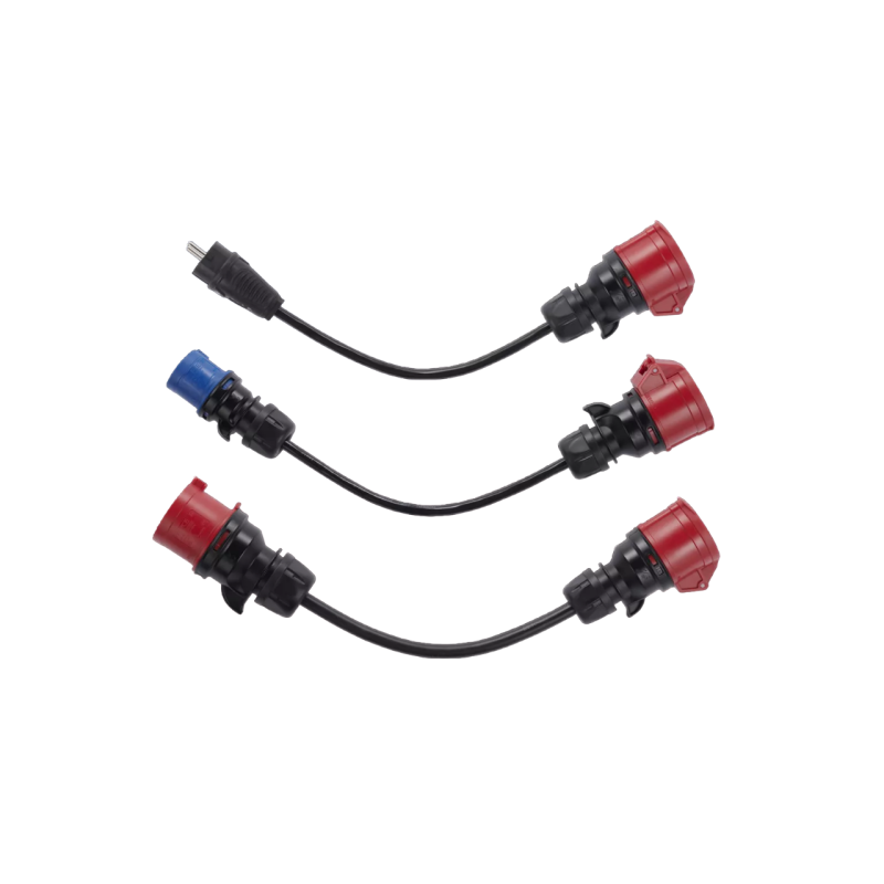 Cu setul de adaptor pentru Wattpilot Go 11 J, ștecherul CEE 16A poate fi adaptat la următoarele tipuri de priză: ștecher CEE roșu 32 A (trifazat), ștecher CEE albastru 16 A, camping plug (monofazat), siguranță ștecher 16 A (priză de uz casnic) Cu setul de adaptoare sunteți la maximum independent și vă puteți încărca cu Wattpilot la orice priză.