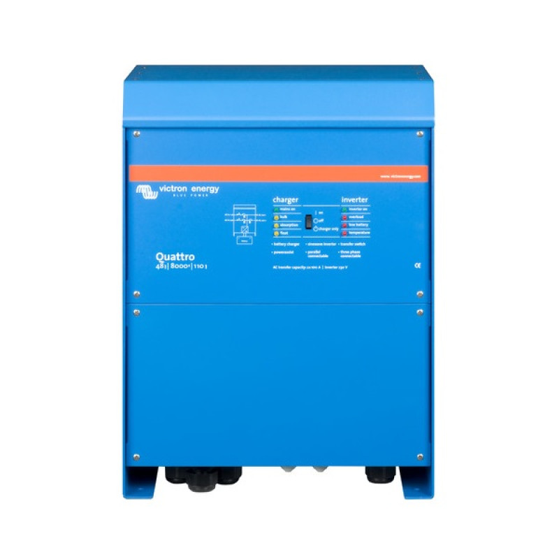 Similar cu MultiPlus, Quattro este, de asemenea, un invertor și încărcător combinat. În plus, poate accepta două intrări AC și se poate conecta automat la sursa activă. Numeroasele sale caracteristici includ un invertor cu undă sinusoidală adevărată, încărcare adaptivă, tehnologia hibridă PowerAssist plus funcții multiple de integrare a sistemului, cum ar fi funcționarea în trei sau fază divizată și funcționarea în paralel.