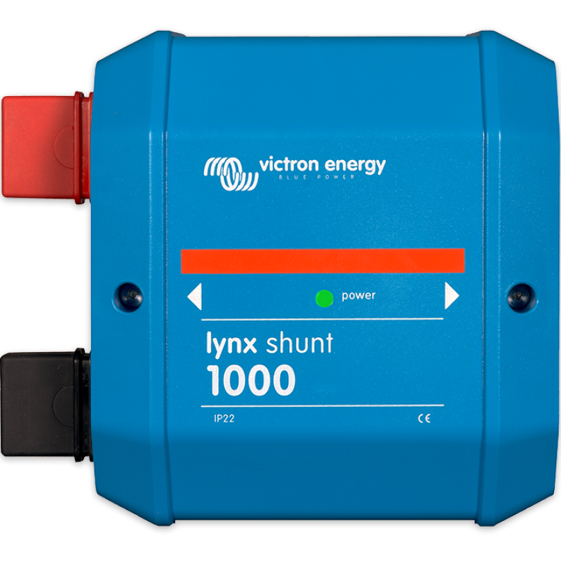 Lynx Shunt VE.Can este un șunt inteligent de 1000A cu locație pentru o siguranță (nu este inclusă), monitorul încorporat al bateriei monitorizează cu acuratețe starea de încărcare a bateriei dumneavoastră. Utilizați un dispozitiv GX (de exemplu, Cerbo GX) pentru a citi informațiile. Parte a sistemului modular de distribuție Lynx.